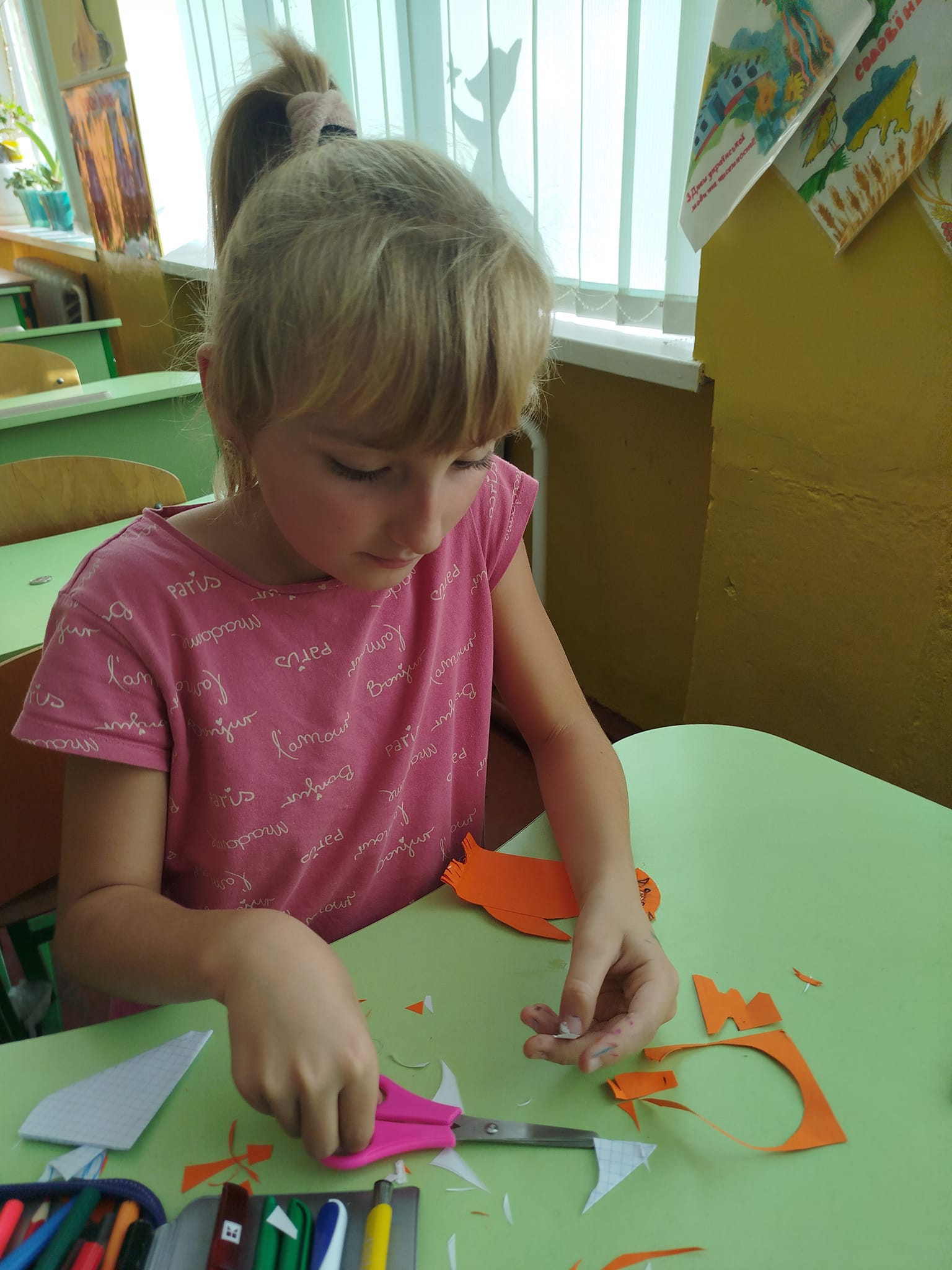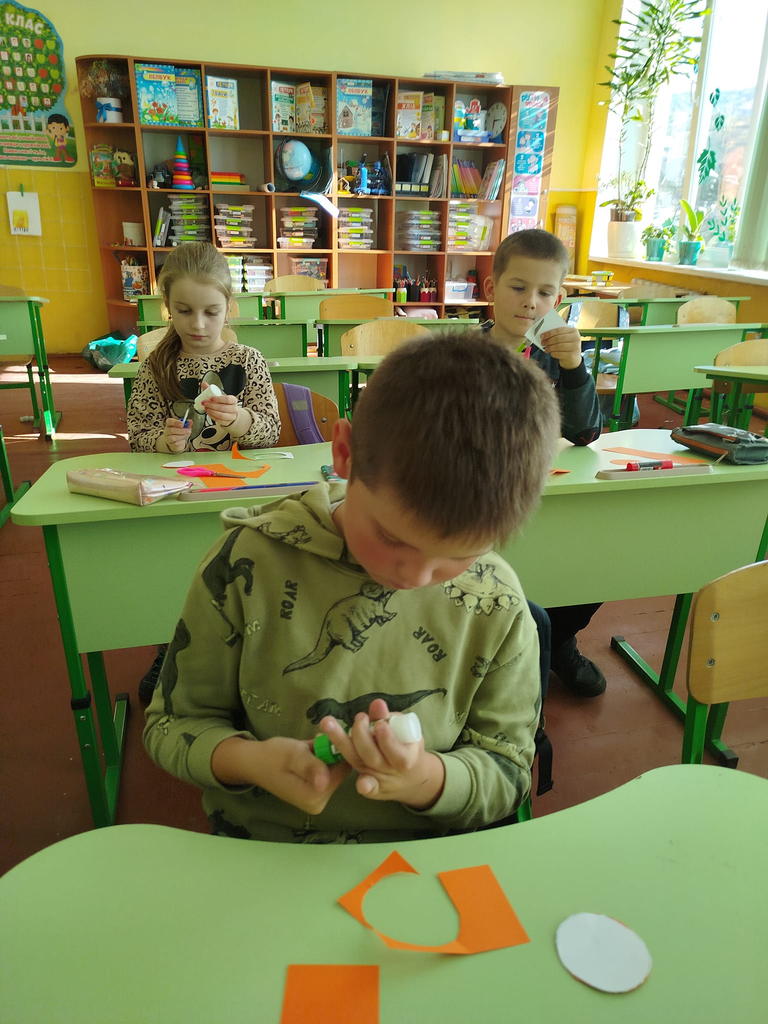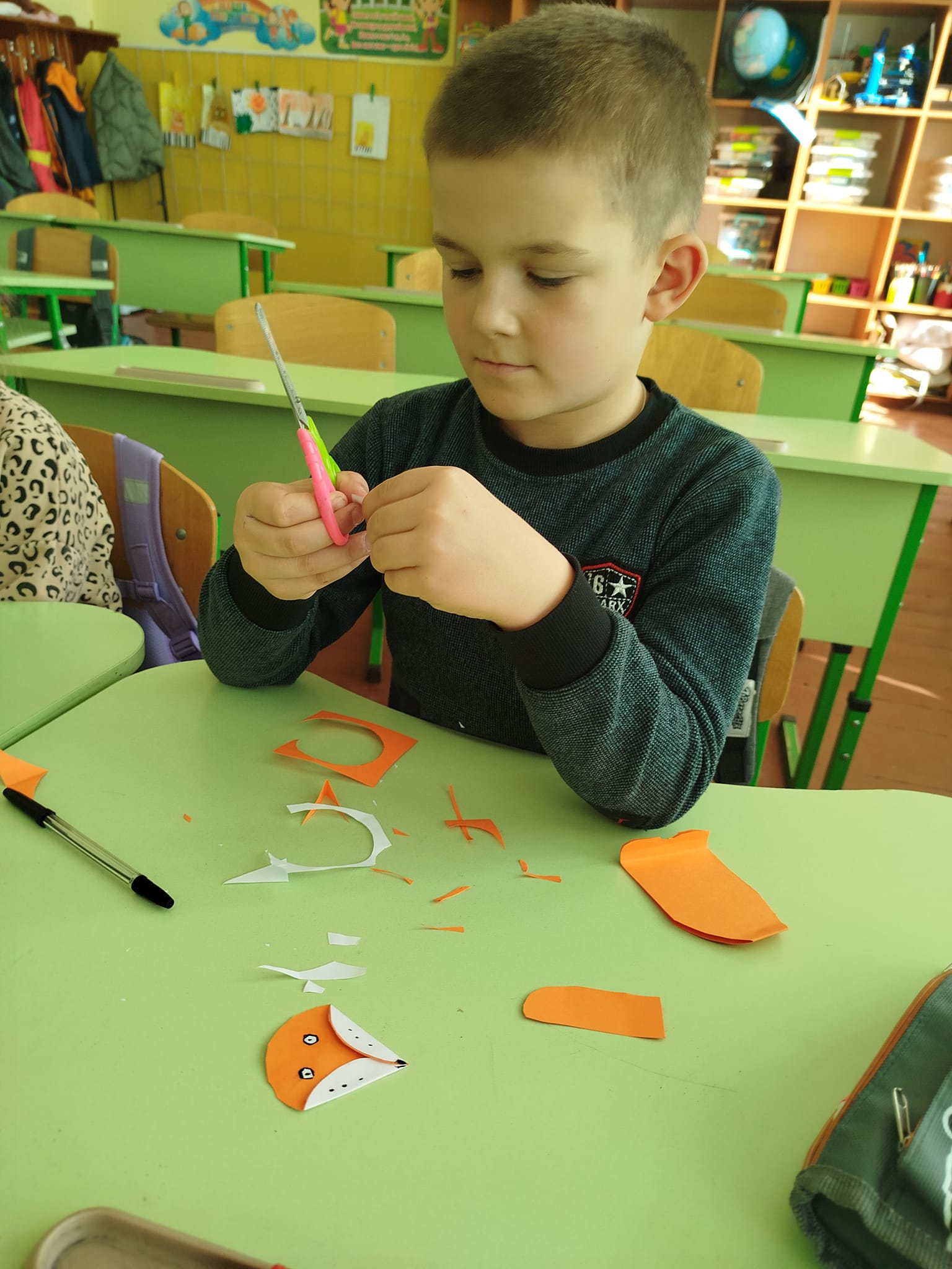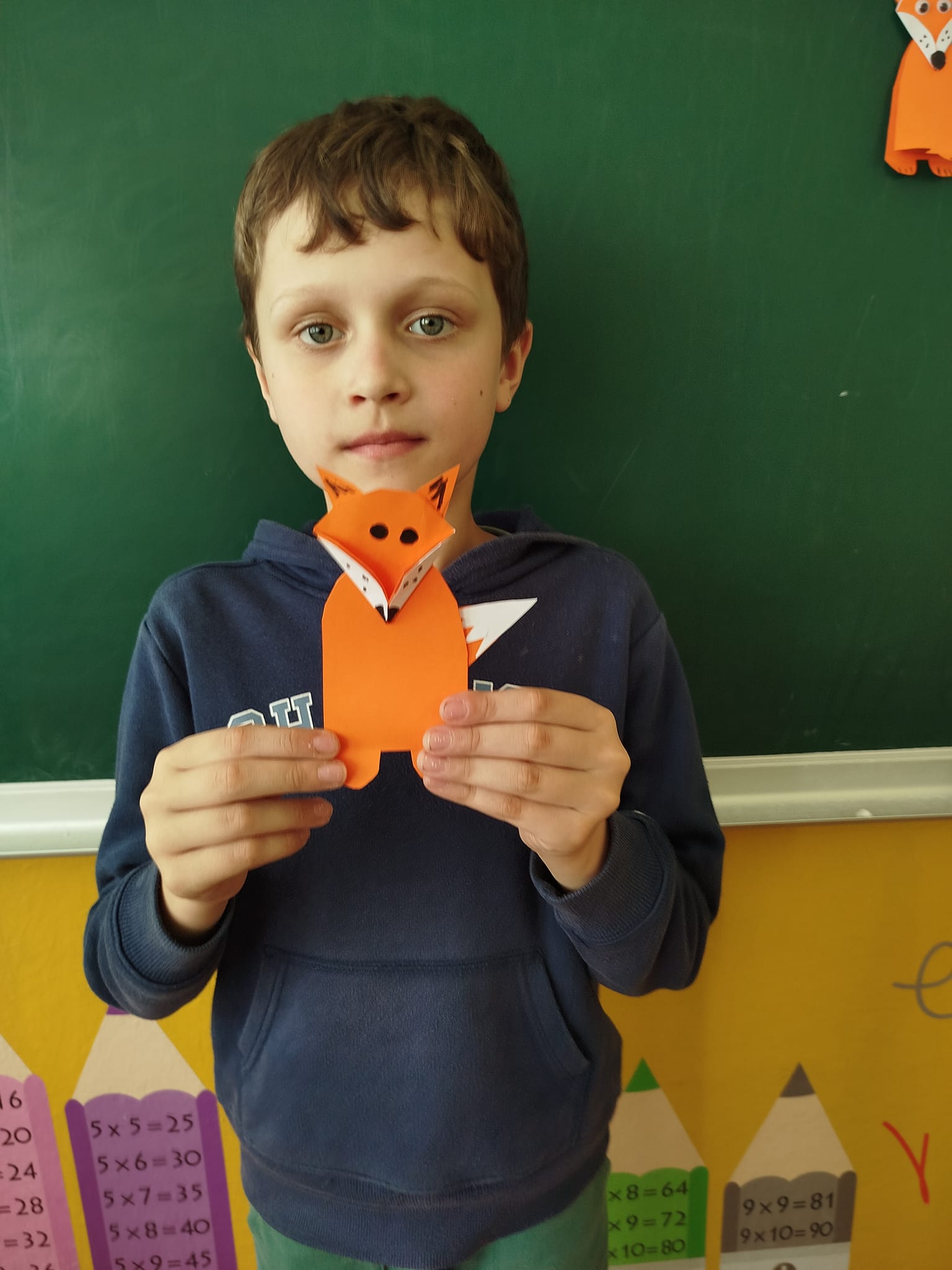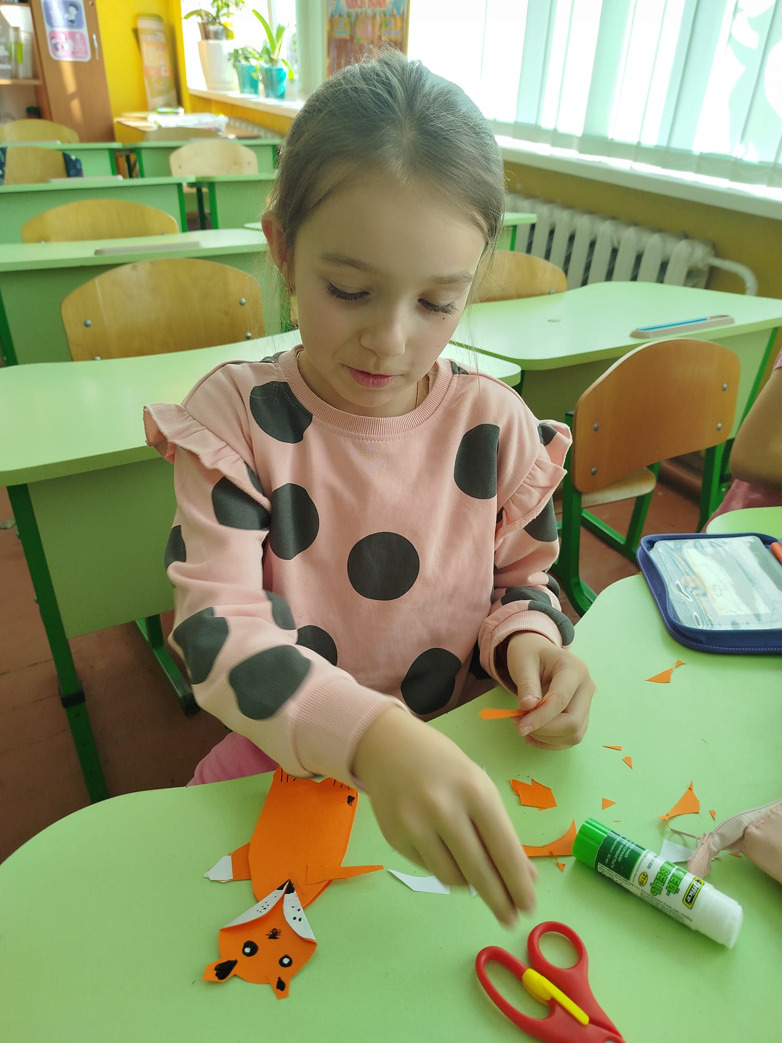 Сьогодні виготовляли лисичку – іграшку з картону. Завдання для учнів виявилося легким, всі з задоволенням вирізали, клеїли, малювали деталі. Лисички вийшли дуже симпатичні. Всі учні – молодці!